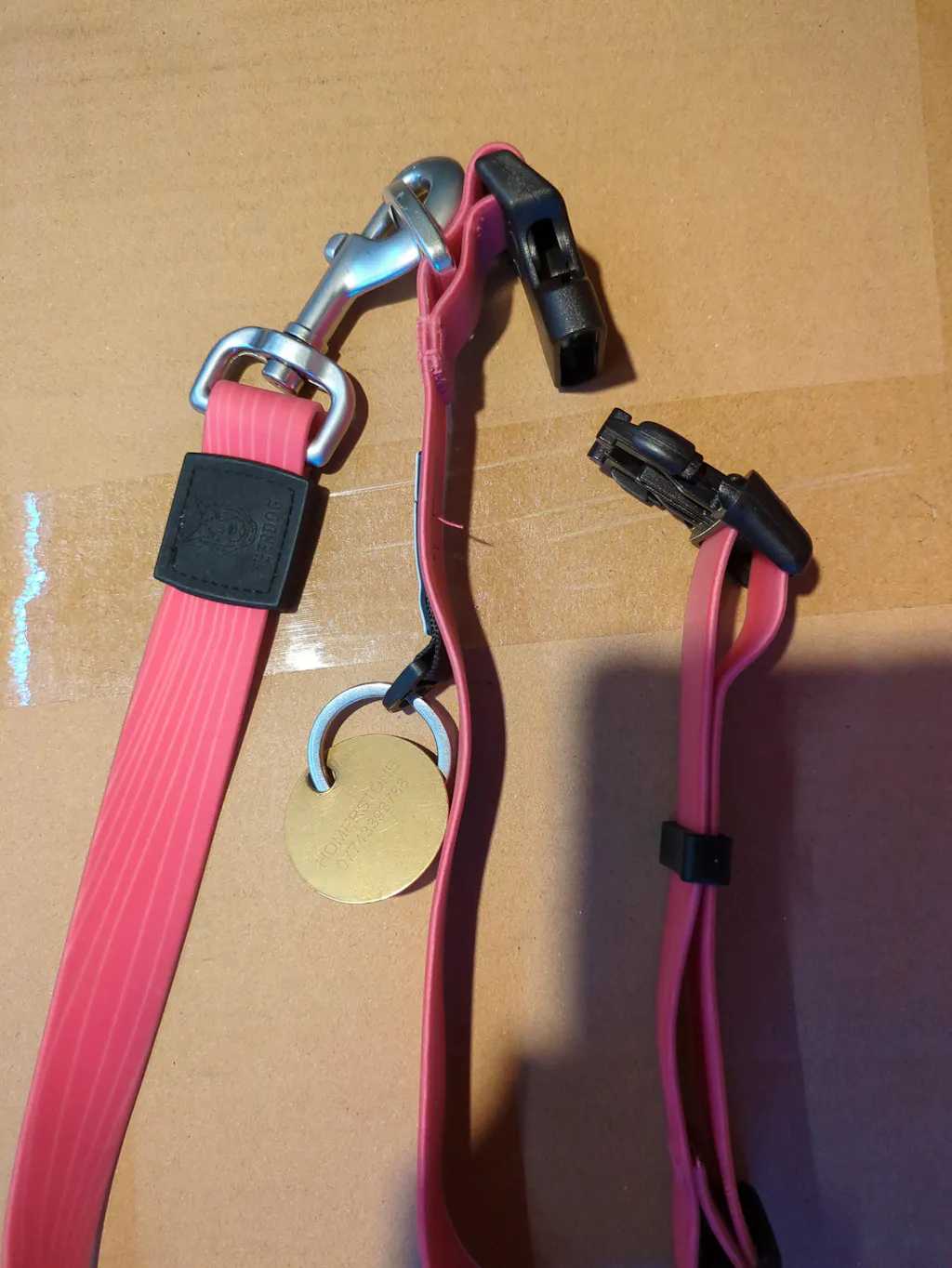 Would have been five stars but the collars push together clasp is plastic as is the name tag loop, I was rather hoping it would be metal similar to the metal used on the lead. I found the lead great to hold in the dry and in the North Wales rain. Not sure how both lead and collar will fair on the beach